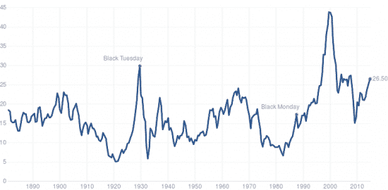 Shillerin p/e -kertoimeen luottavien täytyy siis olettaa, että yritysten tulokset laskevat takaisin keskiarvotasolleen. Toisin sanoen yritysten tulosten tulisi siis laskea.