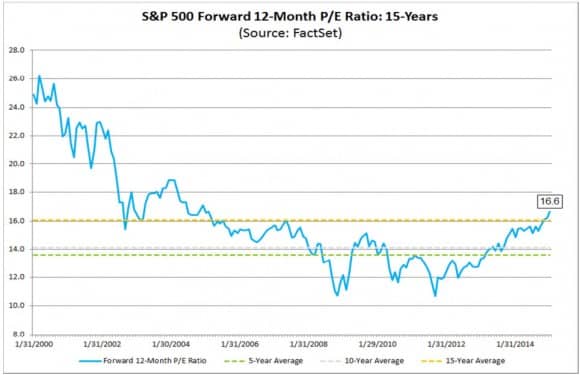 ”Factsetin mukaan P/E-kerroin oli viimeksi näin korkealla maaliskuussa 2015.”