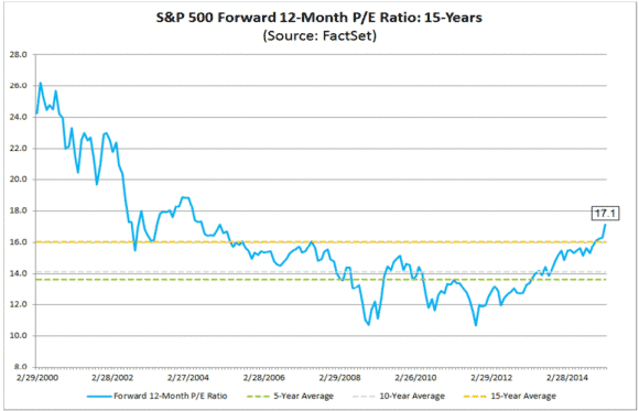 Viimeksi nykyistä korkeammalle arvostustasolle päästiin Factsetin mukaan joulukuussa 2004, jolloin S&P 500 -indeksin pisteluku oli 1211.