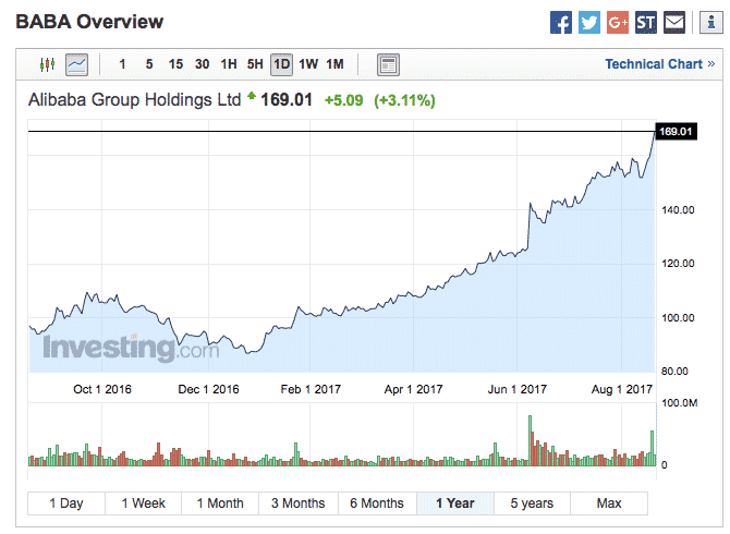 Needham & Company nosti tulosjulkistuksen jälkeen Alibaban tavoitehinnan 155 dollarista 190 dollariin. Nasdaqin listaamista analyytikoista 13 suosittelee ostamaan Alibabaa ja kolme pitämään osaketta. Nousuvaraa siis vaikuttaa olevan, vaikka viimeisen vuoden aikana Alibaban osakkeen hinta onkin noussut voimakkaasti.
