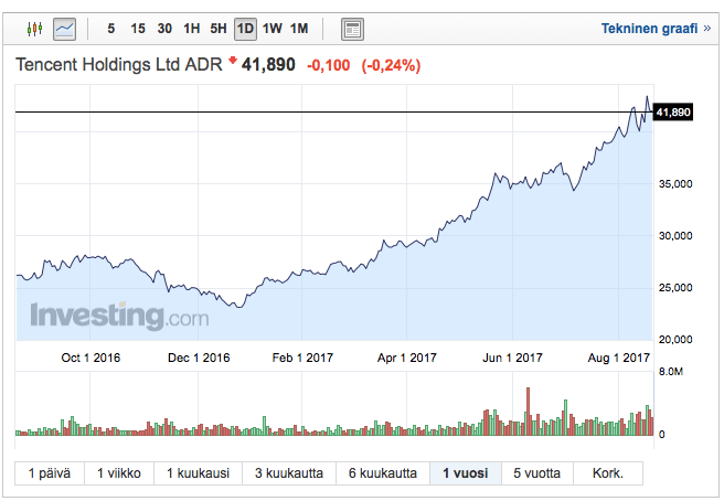 Tencent on ollut myös ollut viimeisen vuoden aikana tuottoisa sijoitus.