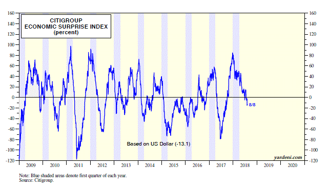 Vaikka kasvu on ollut vahvaa Yhdysvalloissa, eivät kasvuluvut silti ole yltäneet aggressiivisiin odotuksiin. Talouden yllätysindeksit (economic surpise indexes), jotka mittaavat toteutuneiden talouslukujen ja odotusten eroa, ovat laskeneet Yhdysvalloissa ja ovat negatiivisia muualla maailmassa.