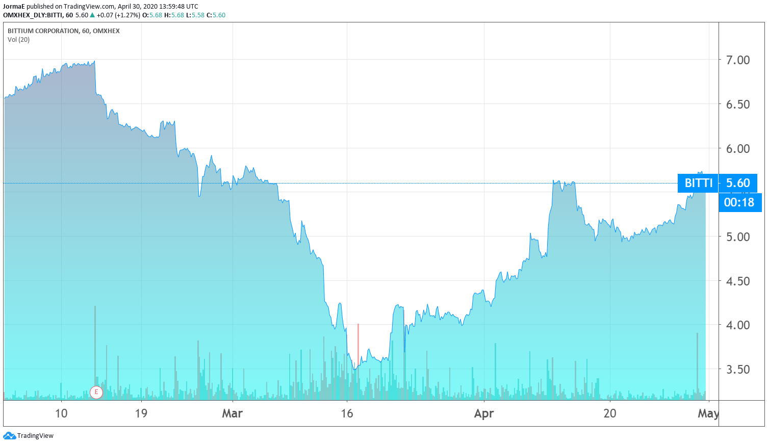 Inderesin suositus Bittiumin osakkeelle on lisää ja osakkeen tavoitehinta on 5,9 euroa.