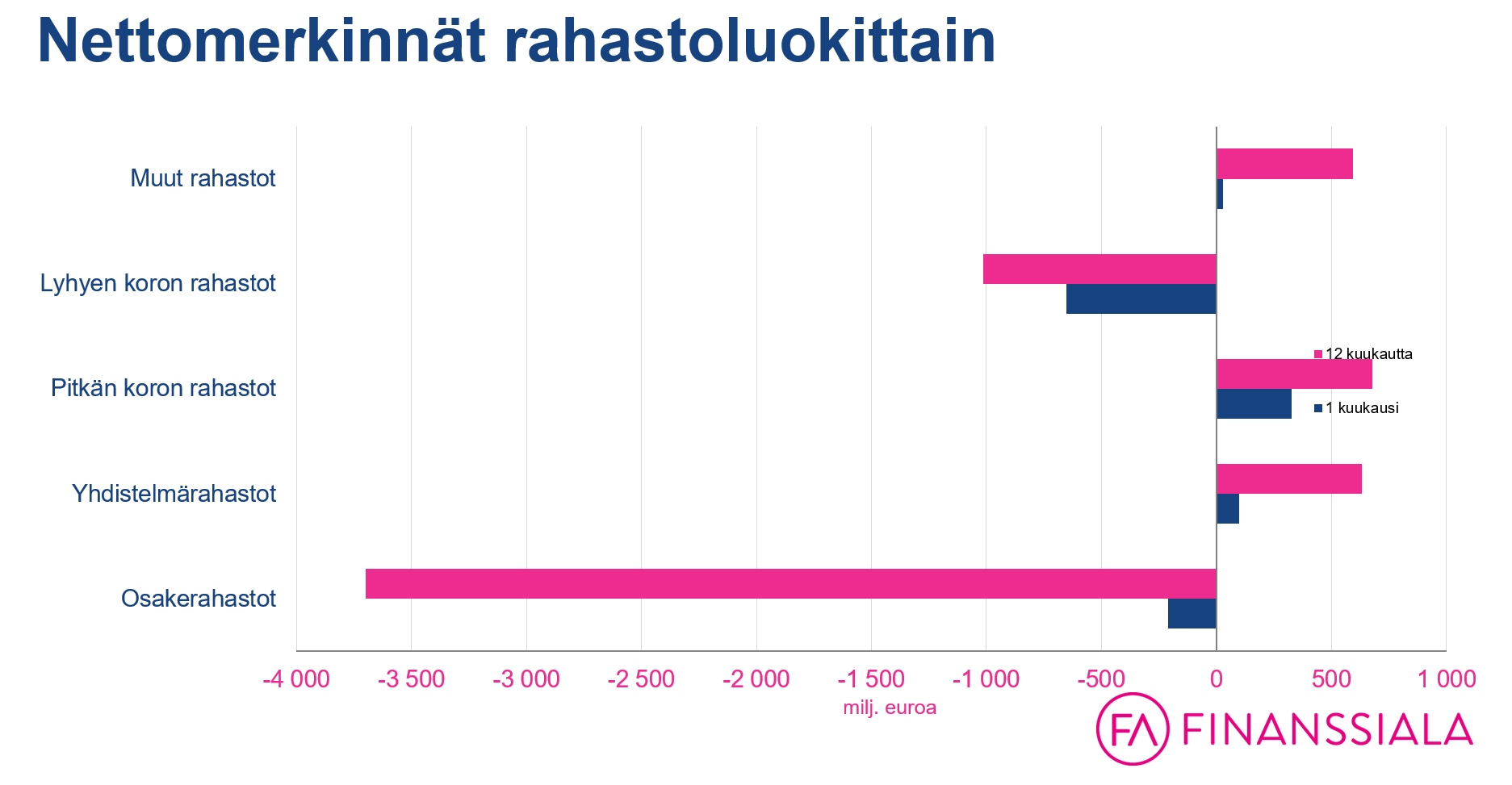 Viimeisen 12 kuukauden aikana kotimaisista osakerahastoista on pääomia häipynyt jo noin 3,7 miljardia euroa.