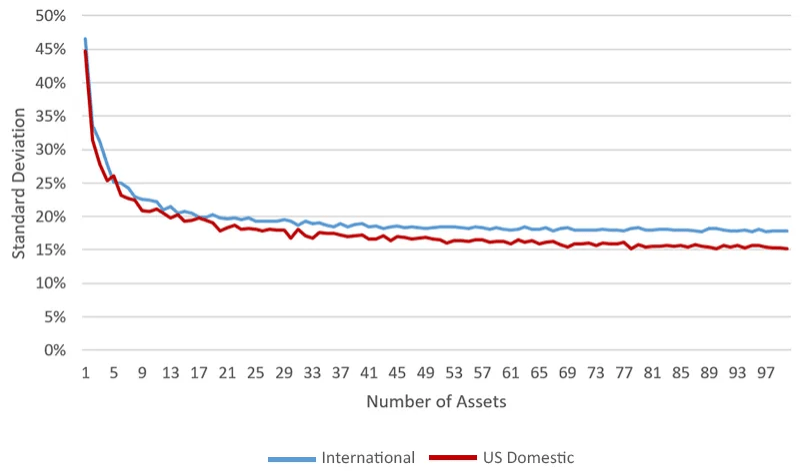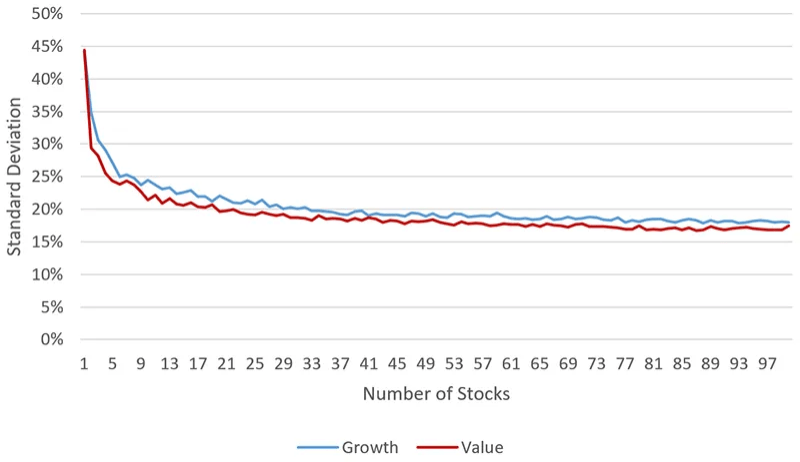Tutkimuksen mukaan kymmenen suurta yhtiötä sisältävän sijoitussalkun keskimääräinen vuotuinen volatiliteetti oli kyseisellä aikavälillä 20 prosenttia. Hajautetumman 40:n suuren yhtiön sijoitussalkun keskimääräinen volatiliteetti oli 17 prosenttia. Näin ollen 30:n yhtiön osakkeen lisääminen sijoitussalkkuun madalsi salkun volatiliteettia vain kolmella prosenttiyksiköllä.