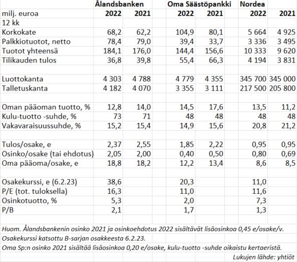 Nordea julkaisi tilinpäätöstietonsa puolestaan torstaina 2.2.2023. Tästä kirjoitimme.
