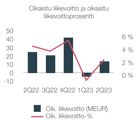 Analyytikoiden konsensusodotus oikaistulle liikevoitolle oli 10 miljoonaa euroa, joten tuloslasku jäi odotettua vähäisemmäksi.