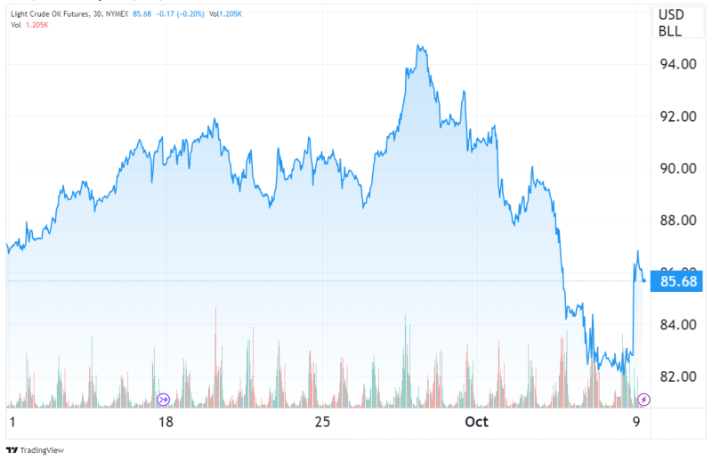 Inflaatio, pelko maailmantalouden taantumasta ja viime kuukausina nousseiden hintojen korjausliike ovat laskeneet WTI-laaöljyn hintaa Yhdysvalloissa muutaman viikon takaisesta noin 95 dollarista hieman yli 80 dollariin viime viikolla.