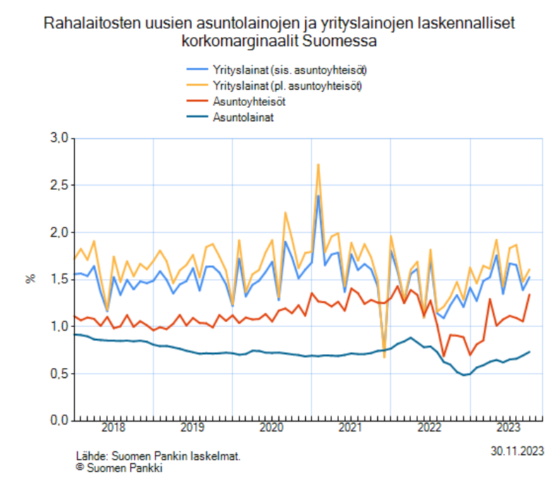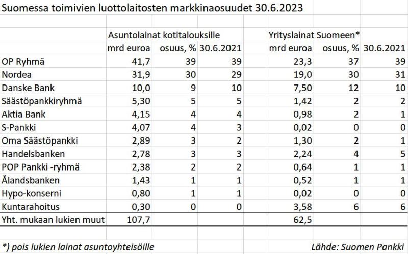 ”Yritysasiakkaiden luottojen lyhennysohjelmien muutoksia ei ole haettu merkittävästi aiempaa enempää. Jotkut yrityksistä ovat jopa kohonneiden korkojen takia maksaneet luottoja ennenaikaisesti.”