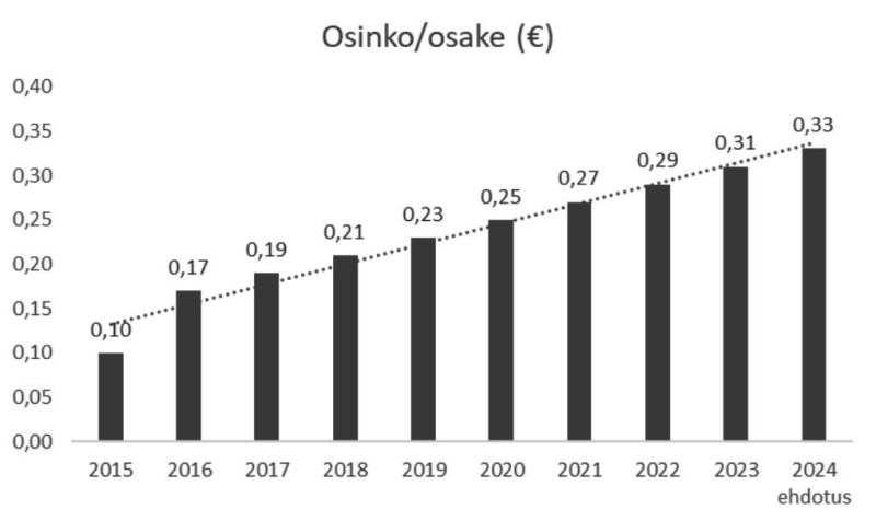 - Kannattavuuskehitys, joka mahdollistaa osakekohtaisen osingon kasvun jatkossakin
