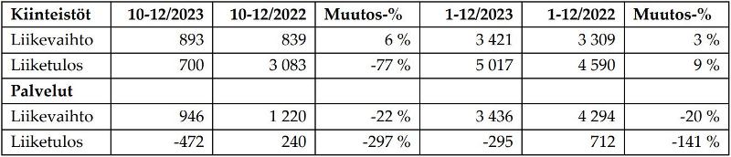 Vaikka palveluiden tuloskunto on juuri nyt heikkoa johtuen alan heikommista transaktiovolyymeista ja yksittäisestä asiakasmenetyksestä Juhola Asset Managementissa, vuokraustoimintaa on pystytty kehittämään ennustettavampaan suuntaan, ote tilinpäätöstiedote: