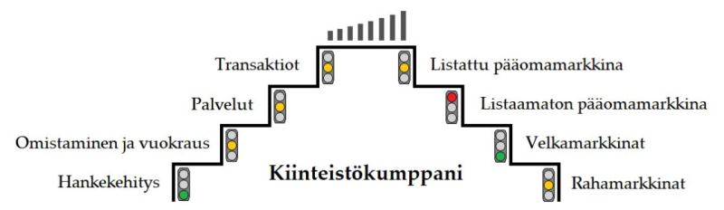 Kiinteistöissä tuottovaatimusten spektri on viime vuosina alalla leventynyt. Jos korot eivät enää nouse, kiinteistöjen tuottovaateiden nousu ja samalla arvonlasku saattaa olla johdon mukaan jo nähty, mutta tilanne on korkokehityksen osalta herkkä. Nopeaa elpymistä tuskin on tiedossa.