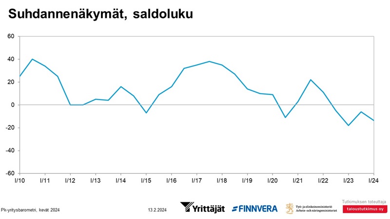 Poikkeukselliset viime vuodet ja talouden nykytilanteen epävarmuus vaikuttavat suoraan pienten ja keskisuurten yritysten suhdannenäkymiin. Kevään pk-yritysbarometrissa yritysten suhdanneodotukset laskivat tuntuvasti viime syksystä, kertoo Suomen Yrittäjät tiedotteessaan. Hieman yli puolet pk-yrityksistä arvio suhdanteiden kuitenkin pysyvän samana.