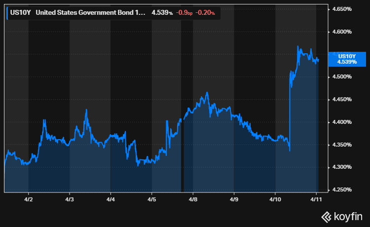 USA:n 10-vuoden velkakirjan korko nousi rajusti eilen, kun korko kipusi 4,56 prosenttiin 4,37 prosentista. Syynä markkinoiden korkoreaktioon olivat tuoreet Yhdysvaltojen inflaatioluvut, jotka olivat odotettua korkeammat.