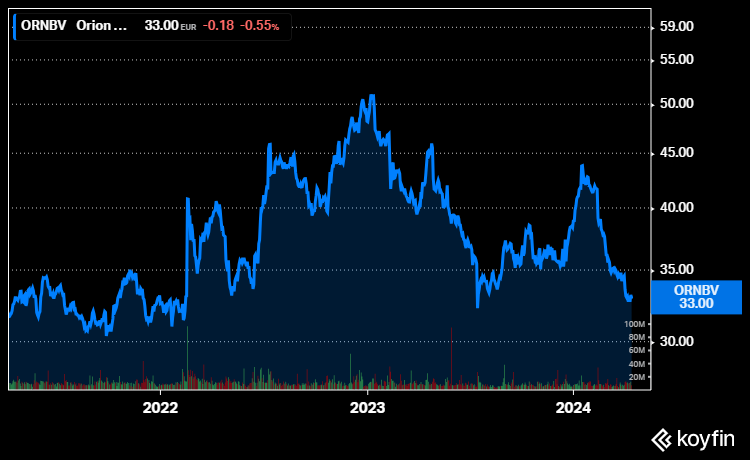 Lääkeyhtiö Orionin osakekurssi on laskenut kuluvan vuoden aikana 17 prosenttia.