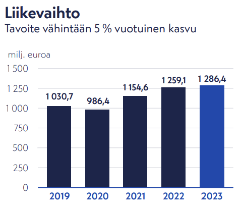 Terveystalon tavoitteena on vähintään viiden prosentin vuotuinen liikevaihdon kasvu orgaanisen kasvun ja yritysostojen avulla sekä vähintään 12 prosentin oikaistu EBITA-marginaali vuonna 2025.
