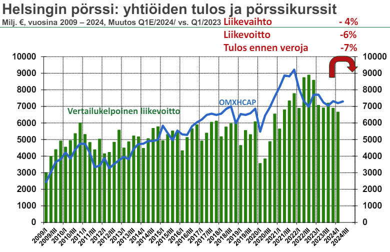 ”Syy kehnoon tulostasoon on heikko taloustilanne erityisesti vientiyhtiöillä, mutta myös viime vuoden ensimmäinen neljännes oli vielä osa suhdannehuippua. Pörssiyhtiöiden tulosromahdus alkoi vasta viime vuoden toisella neljänneksellä. Tänä vuonna tulosparannus ajoittuu jälkimmäiselle vuosipuoliskolle.”