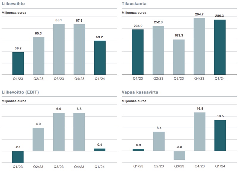 Yhtiö aloitti vuoden 2024 ennätyksellisen suurella vuodenvaihteen 286 miljoonan euron tilauskannalla, joka sisältää useita monivuotisia sopimuksia. Vuotta aiemmin tilauskanta oli 235 miljoonaa euroa, joten tilauskannan kasvu oli lähes 22 prosenttia.