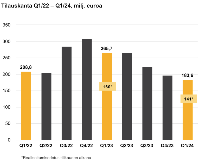 Tilauskanta kuitenkin romahti lähes 31 prosenttia vertailukaudesta 184 miljoonaan euroon.