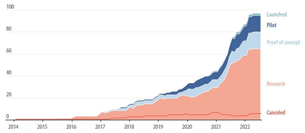 CBDC Trackerin mukaan yhä useammat maat ovat alkaneet sekä tutkia digitaalista valuuttaa että ottaa osaa pilottiohjelmaan. Toistaiseksi vain harvat maat ovat julkaisseet digitaalisen valuuttansa, mutta yhä useampi on mukana testausvaiheessa. Myös Suomessa on parhaillaan menossa pilottivaihe.