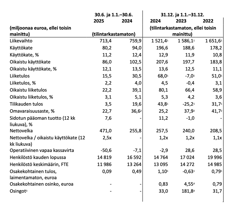 Yhtiö siis odottaa sekä liikevaihdon että oikaistun liiketuloksen laskevan viime vuodesta.