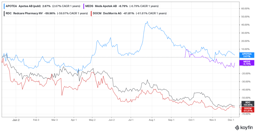 Keski-eurooppalaisia verrokkeja ovat saksalainen Redcare Pharmacy ja sveitsiläinen DocMorris. Molempien liiketoiminta on ollut tappiollista. Erityisesti Redcare on kasvanut vauhdilla. Ensimmäisen yhdeksän kuukauden aikana Redcaren liikevaihto kasvoi 27 prosenttia. DocMorris kasvoi ensimmäisellä vuosipuoliskolla kymmenen prosenttia.