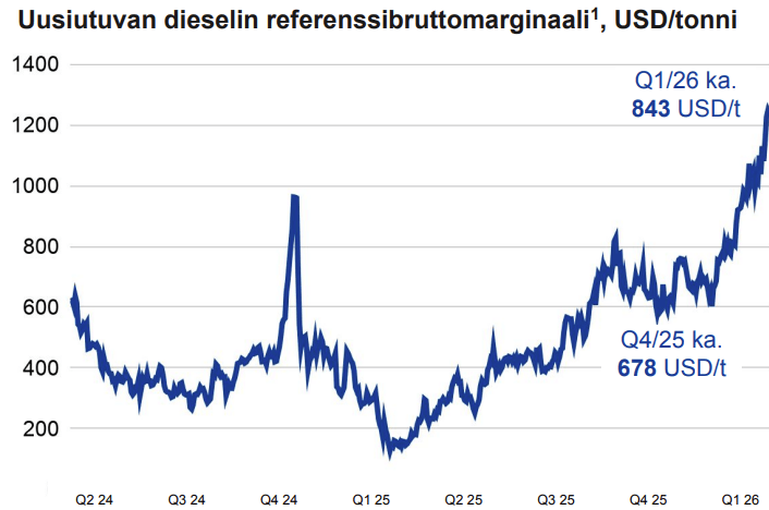 Toimitusjohtaja Heikki Malinen kuvasi neljännestä poikkeuksellisen vaiheikkaaksi. Hänen mukaansa neljänneksen viimeisiä viikkoja leimasivat Lähi-idän konflikti ja Hormuzinsalmen sulkeminen, jotka aiheuttivat öljymarkkinoille historiallisen suuren toimitushäiriön ja rajun hintojen vaihtelun.